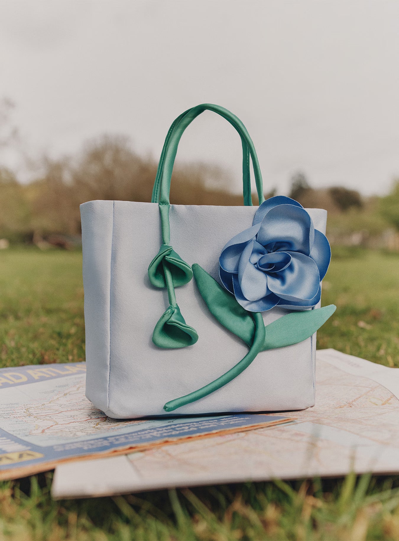 Blue Taffeta 3D Flower Bag