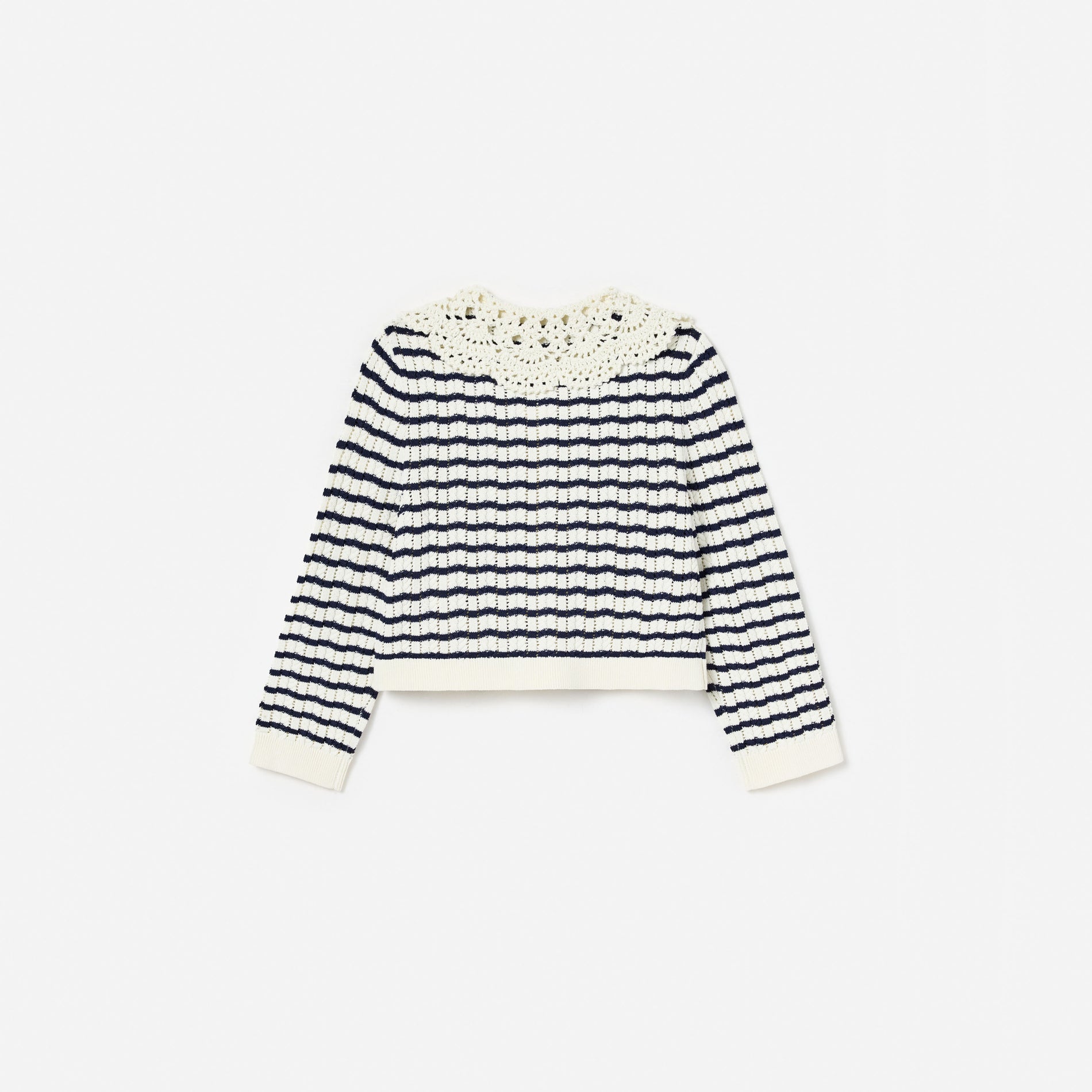Cream And Navy Striped Knitted Cardigan