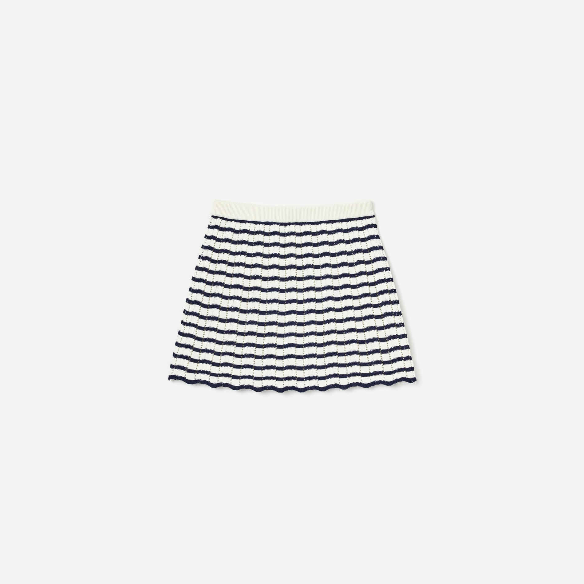 Cream And Navy Striped Knitted Skirt