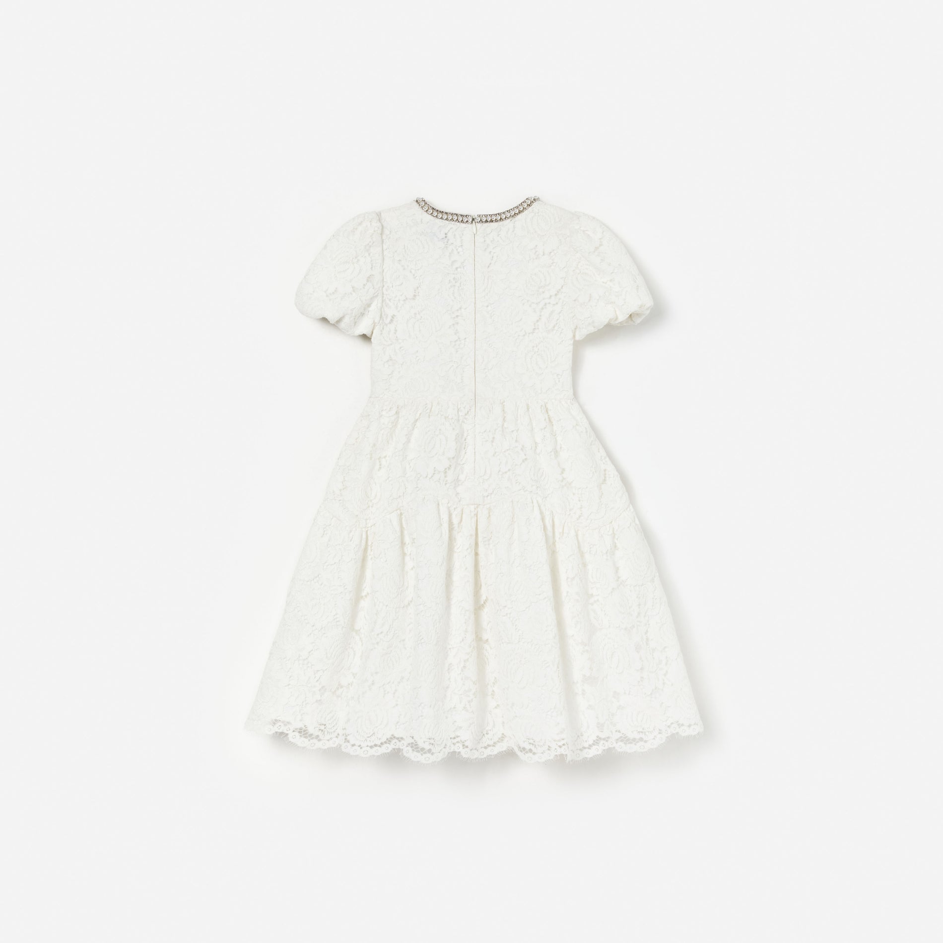 White Lace Pearl Trim Dress
