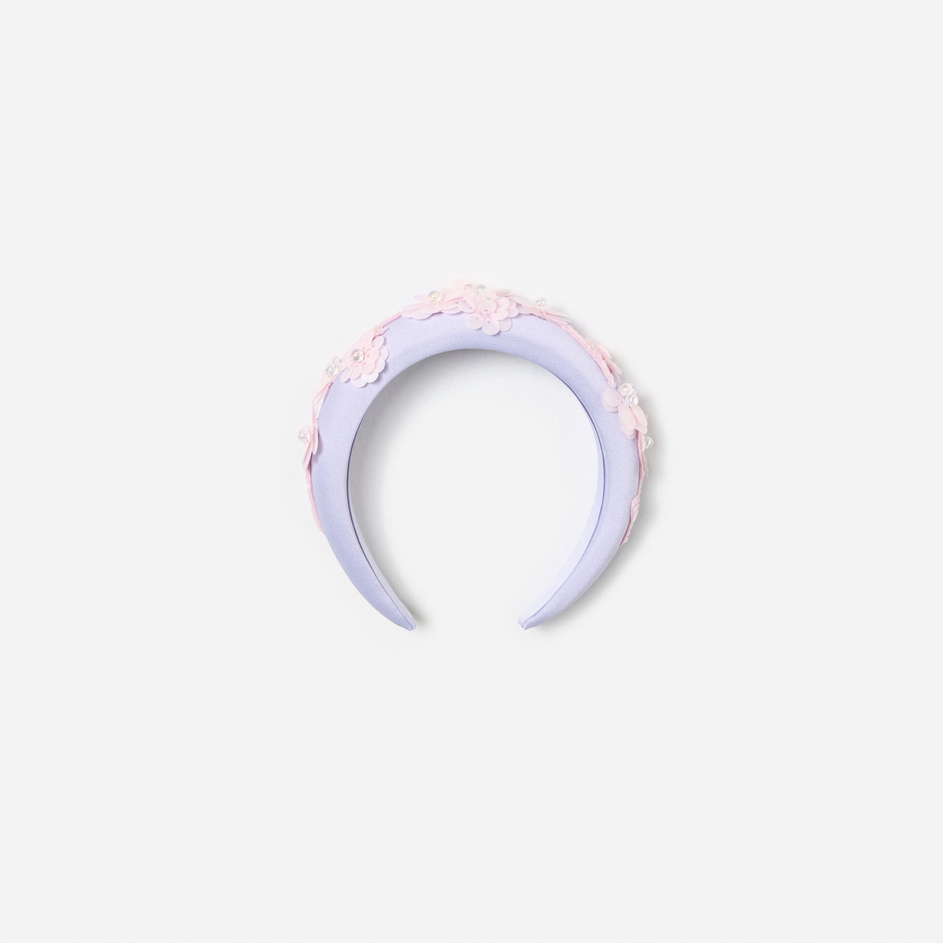 A charming treat for the mini fashionista, this lilac taffeta pouch boasts multi-coloured floral embroidery for irresistible charm. Style it with our pastel outfits to shine from head-to-toe.