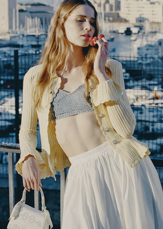 Cream Pearl Collar Alpaca Knit Top