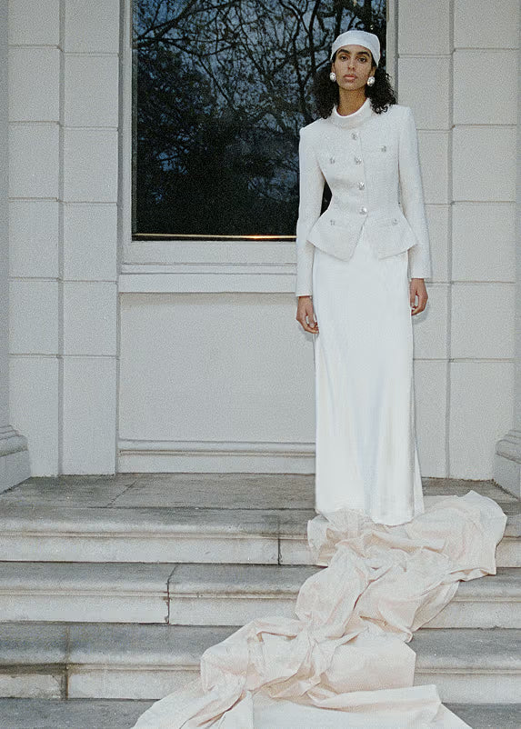 Cream Rhinestone Cape Maxi Dress
