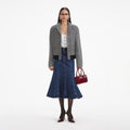 Dripping in old school charm thanks to the soft structure of black herringbone, this jacket has an elasticated waist for a cinched silhouette. Pair with the matching skirt and a structured Bow Bag for desk-to-dinner chic.
