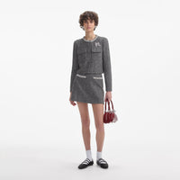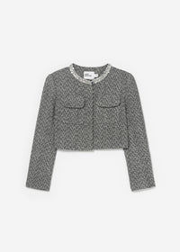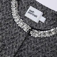 A dose of prep comes easy with this jacket, which contrasts classic herringbone in a flattering boxy cut with feminine diamanté trims. Pair with the matching skirt for a chic day of meetings.
