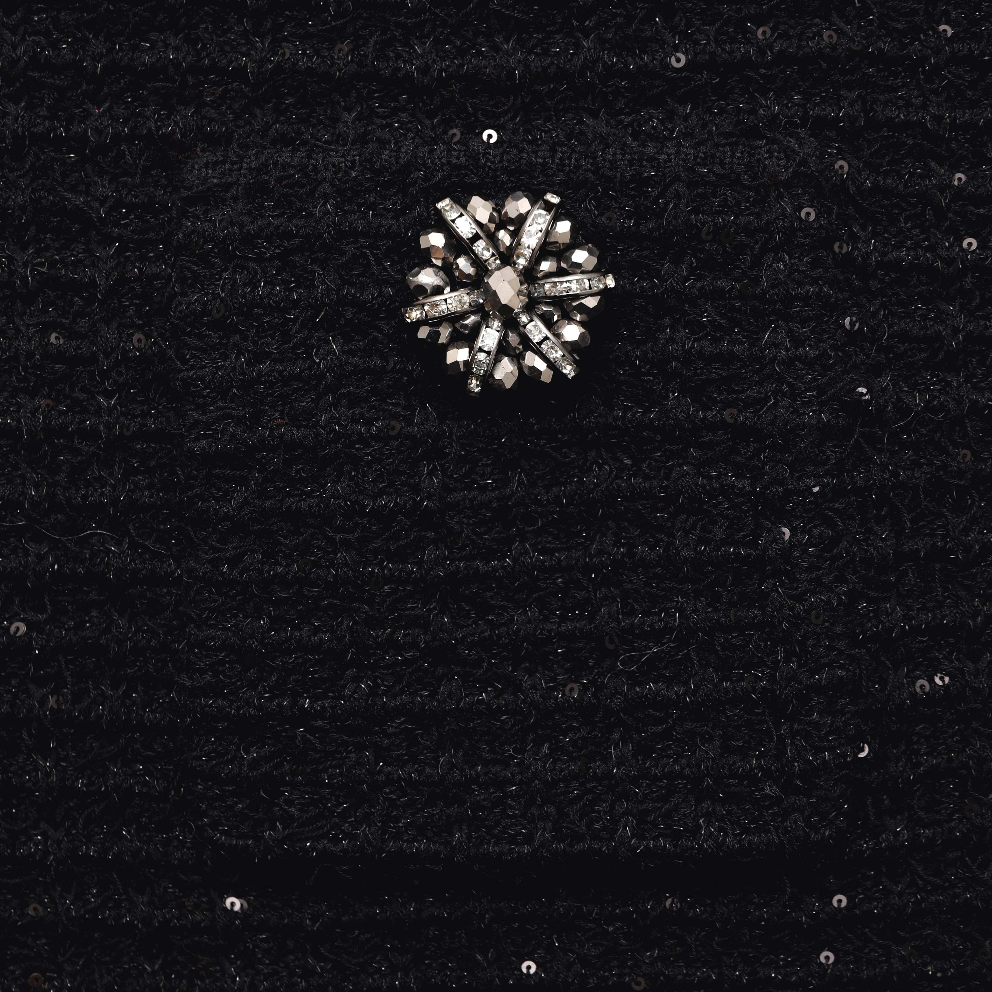 A black mini with ageless appeal, this diamanté-topped skirt is knitted for a cosy feel, and flatters with a fitted, leg-lengthening cut. Pair with the matching jacket for full impact.