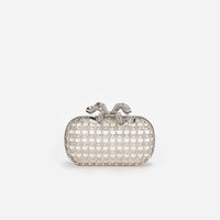 There's no such thing as too much diamanté, and this bow-topped chainmail clutch with its snowy colourway, is a case in point. Pair with our statement earrings for the ultimate finishing touch.