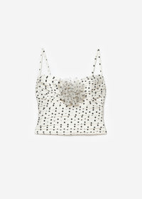 Polka dots never get old and this party-friendly top — with its chic palette, strappy neckline and corsage detail — hits the bullseye. Pair with denim and our statement earrings for date night.