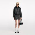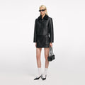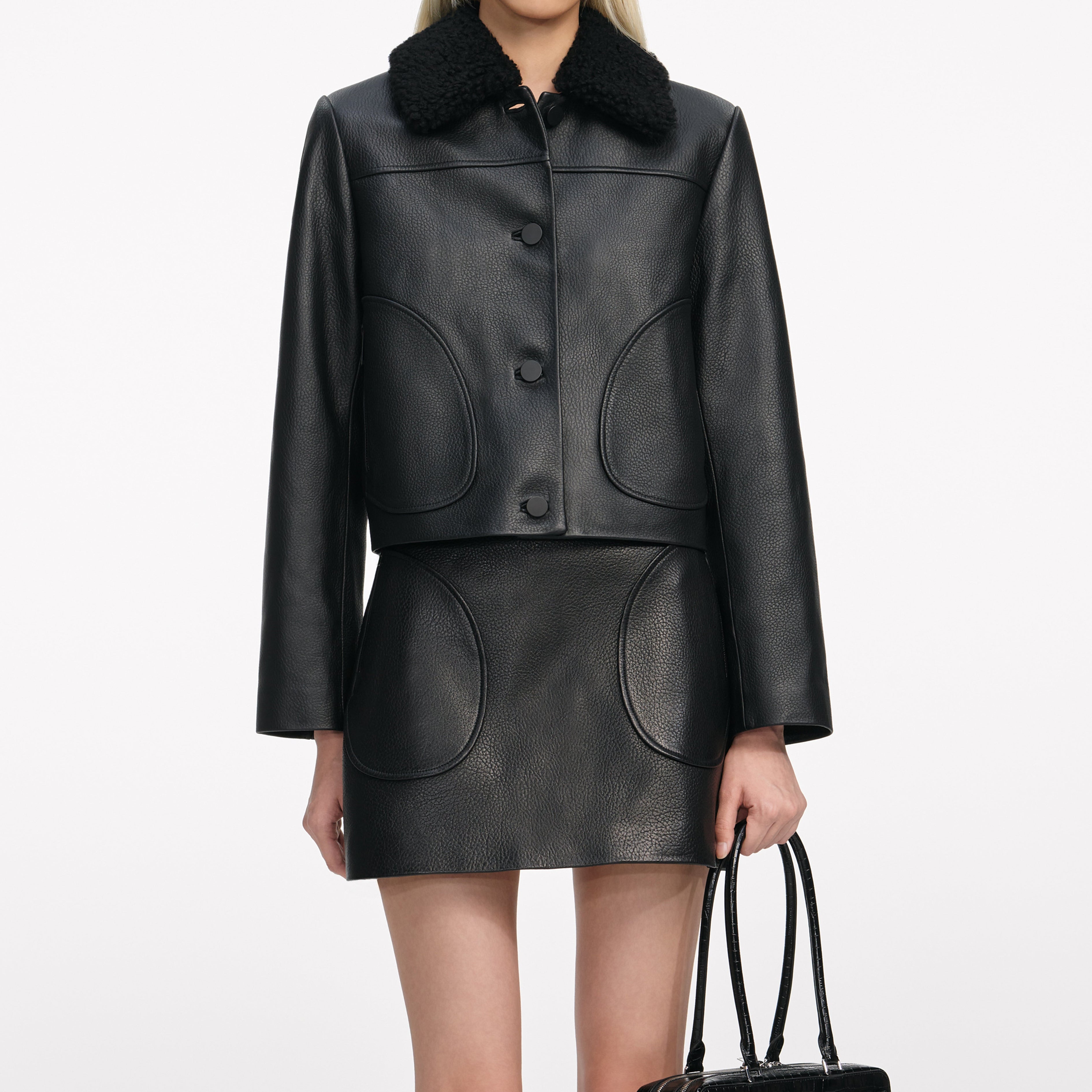 A timeless staple, this black leather jacket boasts an oversized collar and flash gunmetal buttons. Its cropped fit makes it an ideal styling piece – wear it with slip dresses and denim alike.