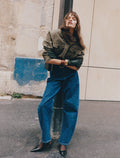 Channel uniform chic in this cotton gabardine khaki shirt, which boasts military-inspired accents. Removable shoulder pads shape a powerful silhouette – wear with a micro mini to take the town.