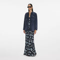 Channel utilitarian chic in this oversized navy suede jacket. Cut with a relaxed fit, epaulette-topped shoulders add to its androgynous flair – wear over a slinky slip dress for a stylish contrast.