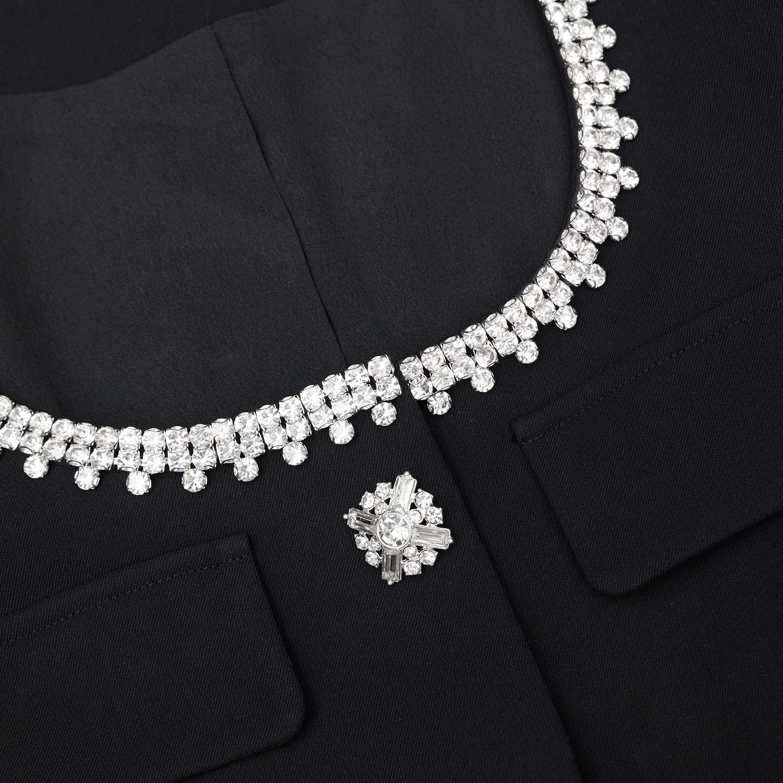 Effortlessly polished, this dress is cut from black bonded crepe for its smooth texture and structured feel. The scoop neck, pockets and front are lined with diamanté and pearl trims, with a fitted waist and short hemline to accentuate your figure. Channel your inner Parisian and style it with ballet flats for a dinner date. Check the Size Guide to find your perfect fit.
