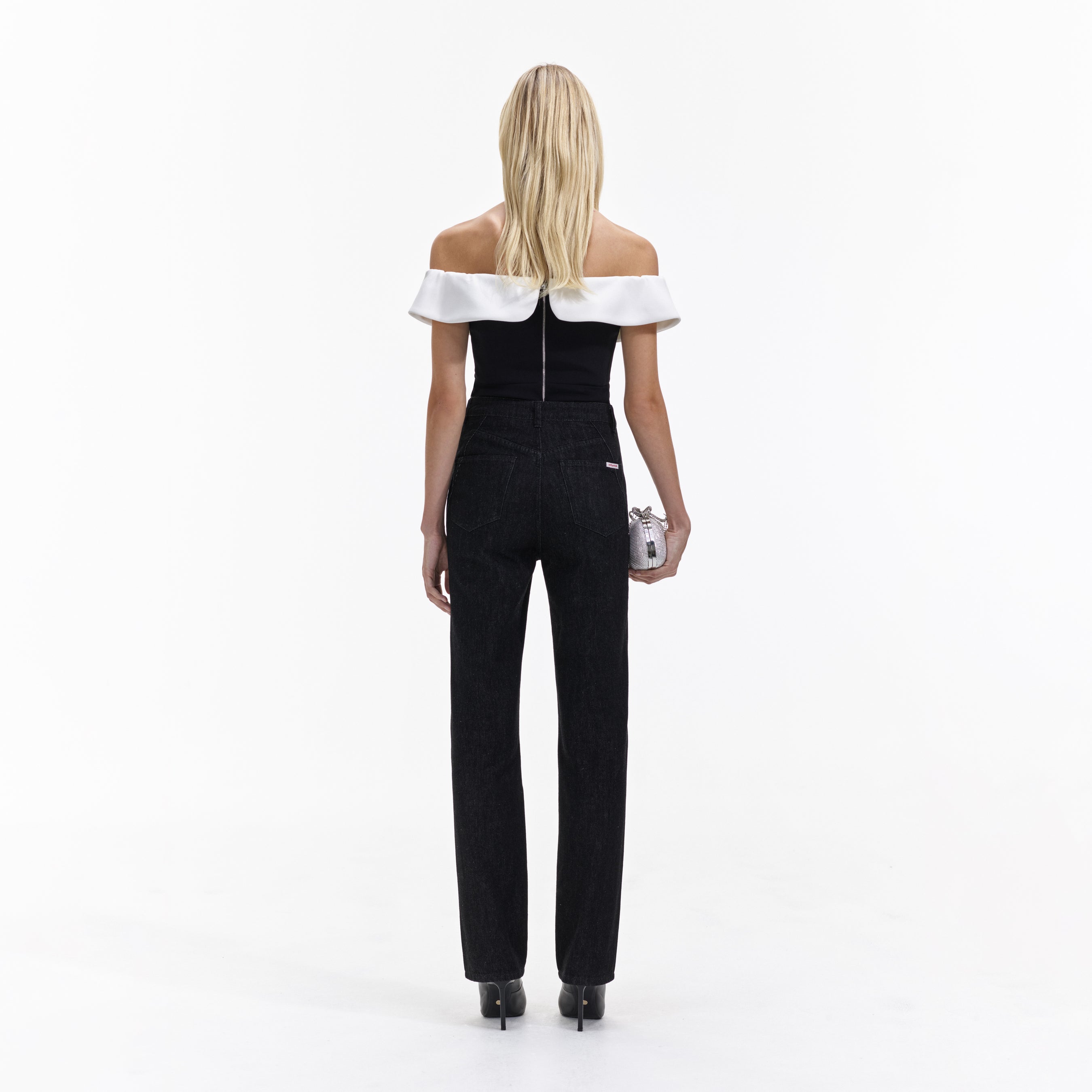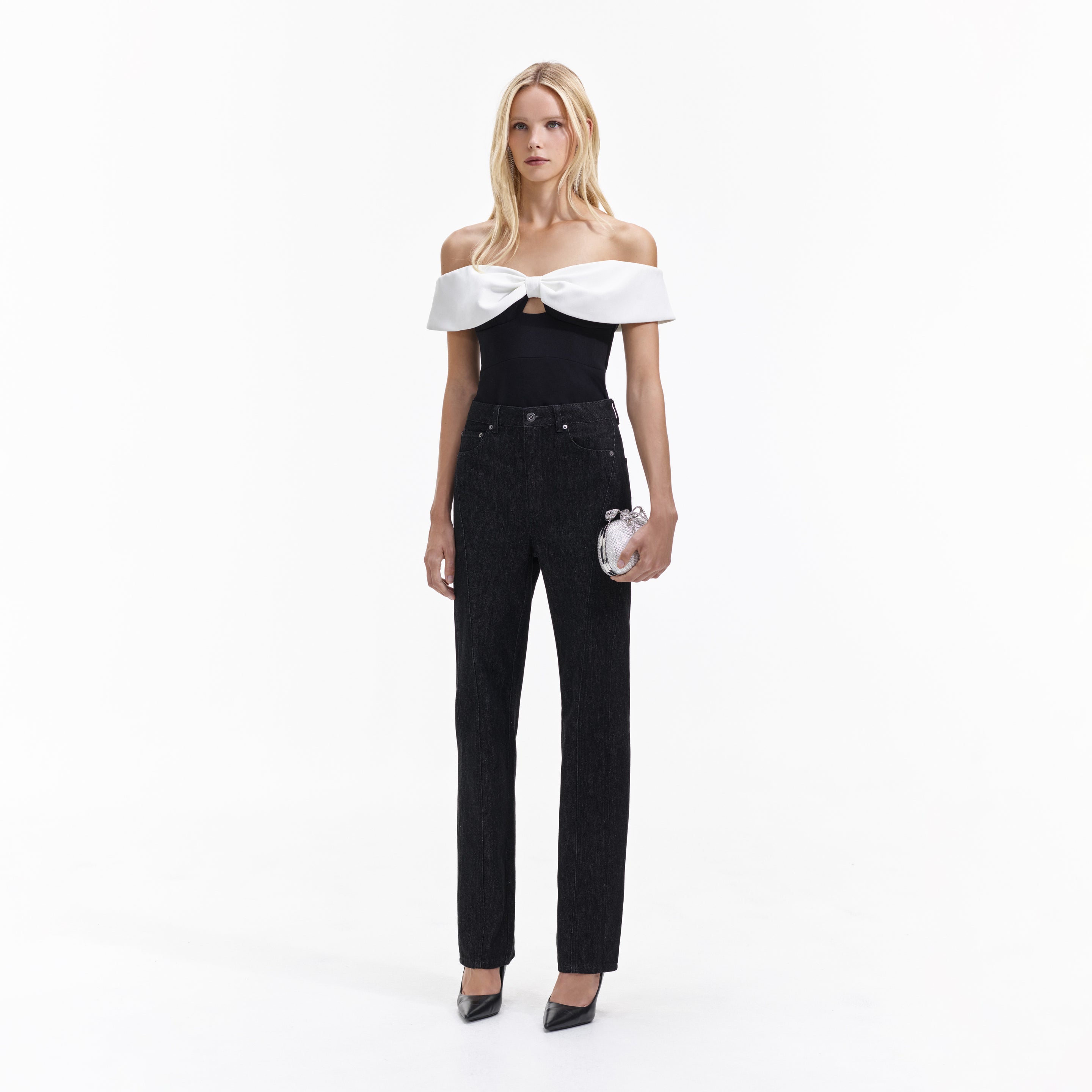We can never resist a good bow, and this top is no exception. Cut from black crepe for a buttery smooth feel, its contrast off-shoulder neckline spotlights your décolletage while a small cut-out adds a daring touch. Pair it with a black midi skirt and heels for a foolproof cocktail look, and dress it down with jeans and a blazer. Check the Size Guide to find your perfect fit.