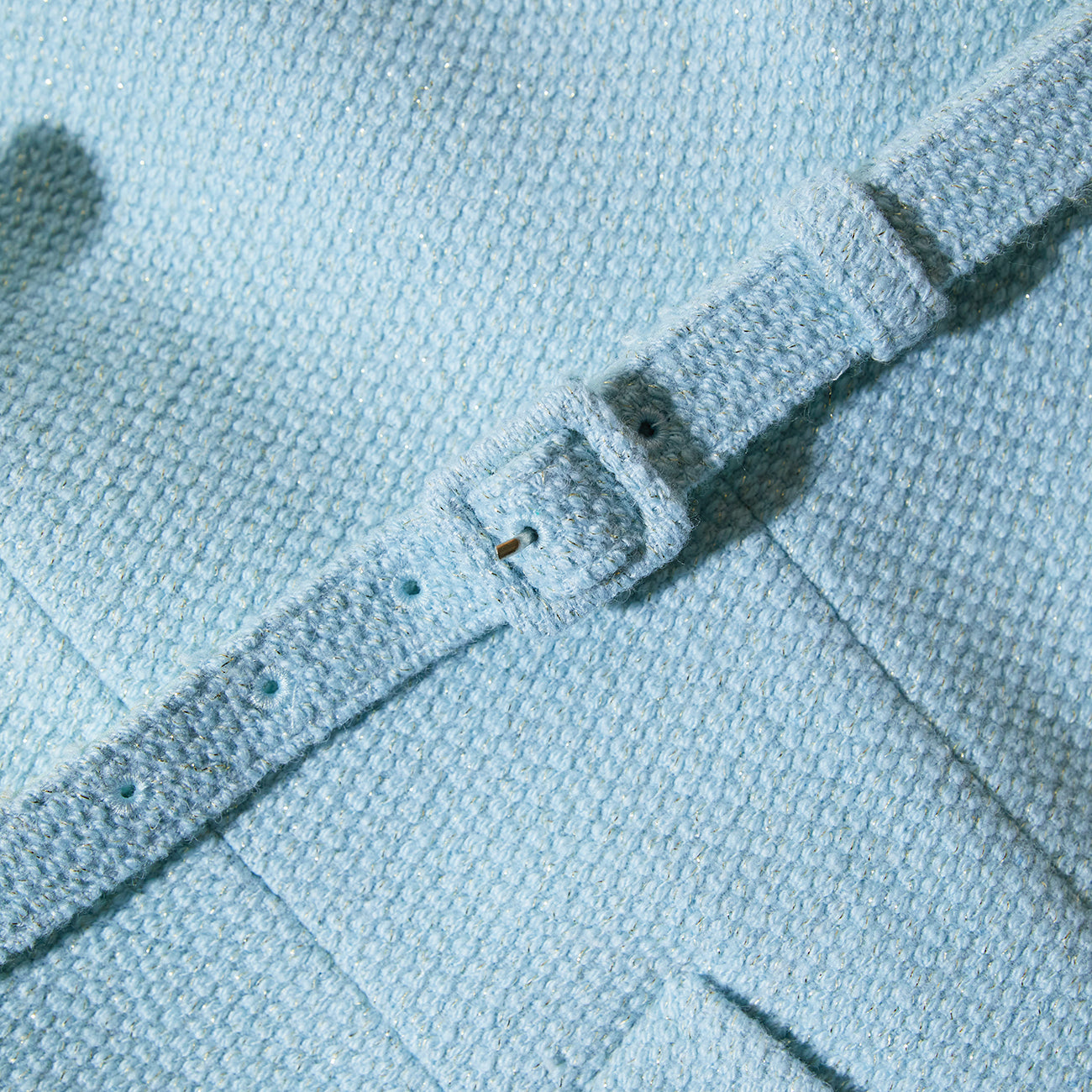 Be unexpected in this asymmetric blue midi, cut from wool-blend fabric with a hint of sparkle. The double-breasted bodice presents classic elegance with a twist, with an off-the-shoulder detail that highlights the collarbone, before falling into a full midi skirt. Ideal for weddings and after-work cocktails, pair with pumps and our Bow Bag for timeless elegance. Check the Size Guide to find your perfect fit.