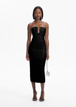 Cream Sequin Boucle Strapless Midi Dress-CREAM