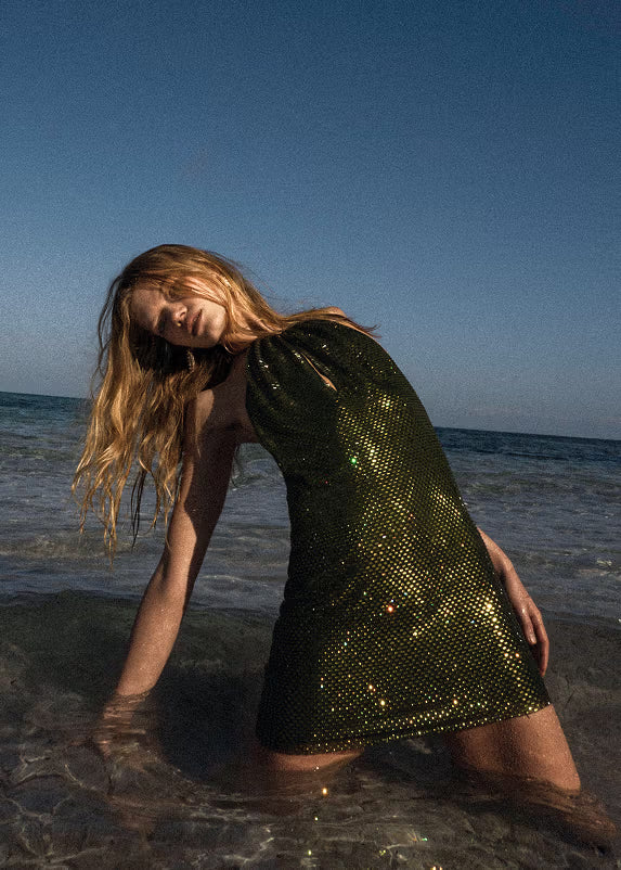 Retro-glamour gets a dose of Americana in this denim party dress, which has a flattering notched neckline, cinched waist and twirl-worthy mini skirt. Pair with platforms for girls’ night out.