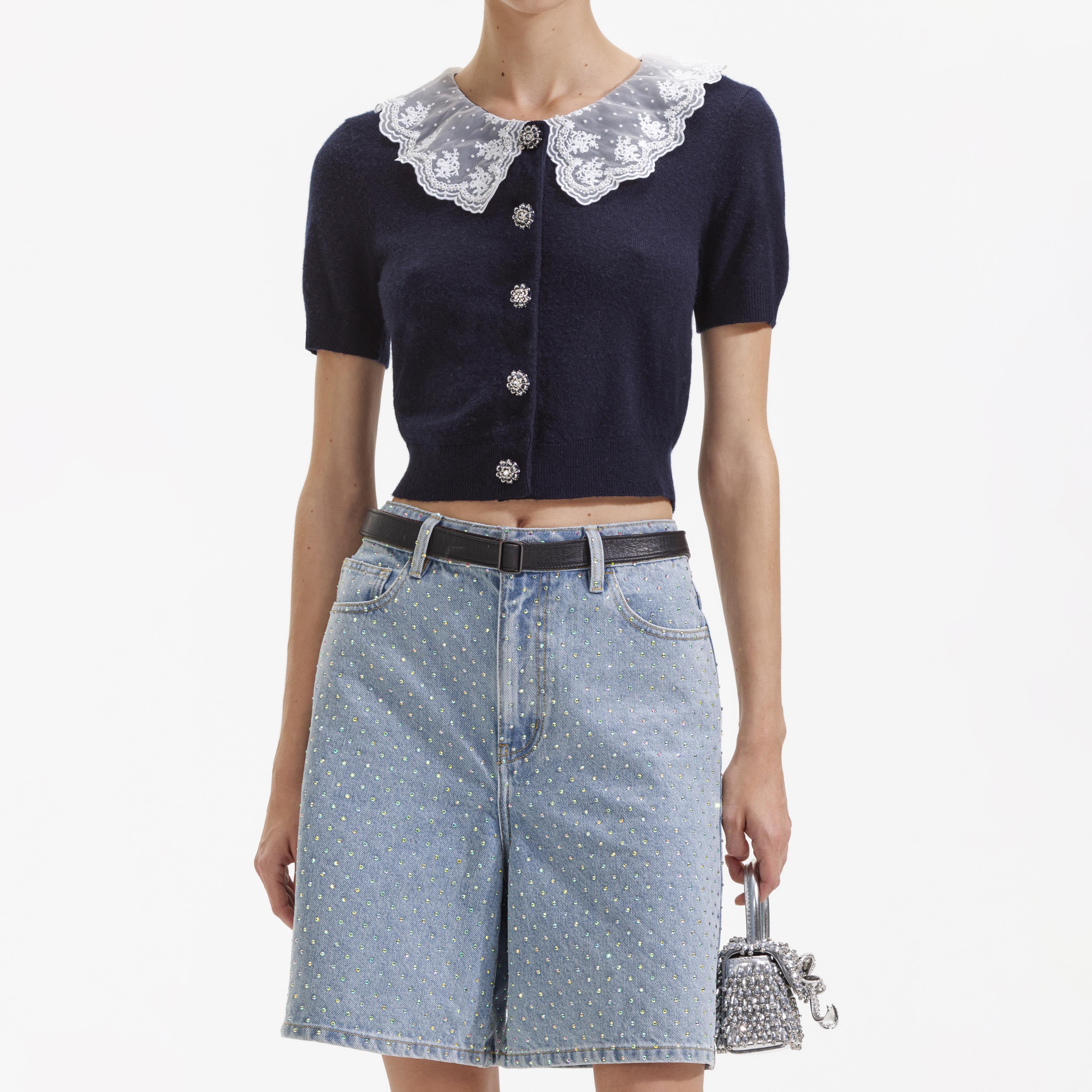 Cute as the diamanté buttons lining its front, this cardigan is crafted with a super soft cashmere blend. It has a retro-chic lace collar and a cropped fit, making it ideal for date night.