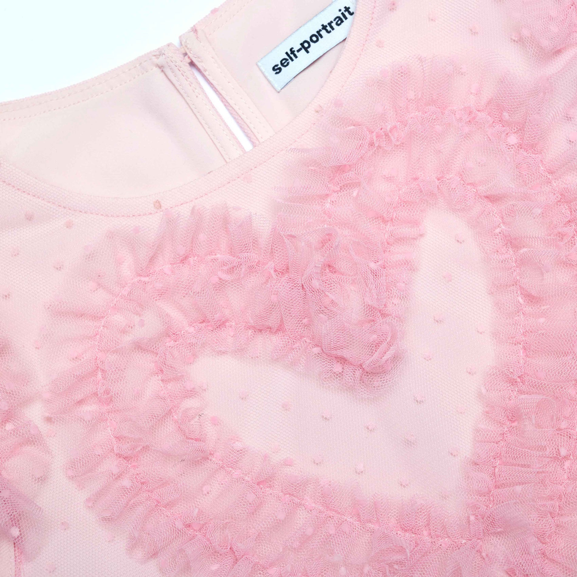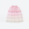Fit for a princess, this cape is crafted from pink dot mesh with enchanting ombré tiered ruffles. It features a decorative bow at the neck – perfect for layering over special party dresses.