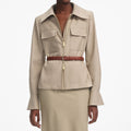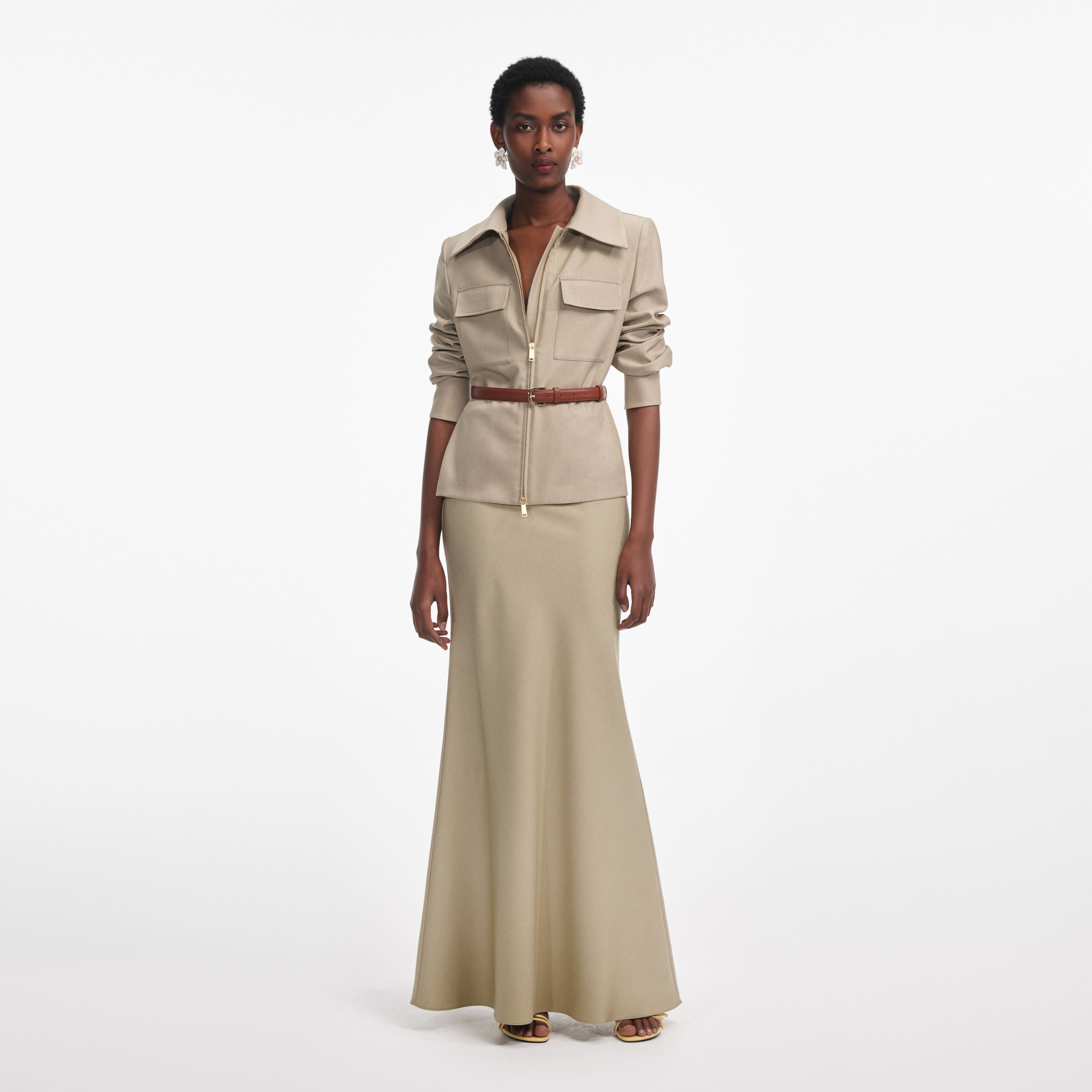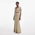 Utilitarian edge meets feminine flair in this beige twill maxi dress. A detachable top and skirt allows it to be worn separately for versatility or styled together for a lesson in relaxed elegance.