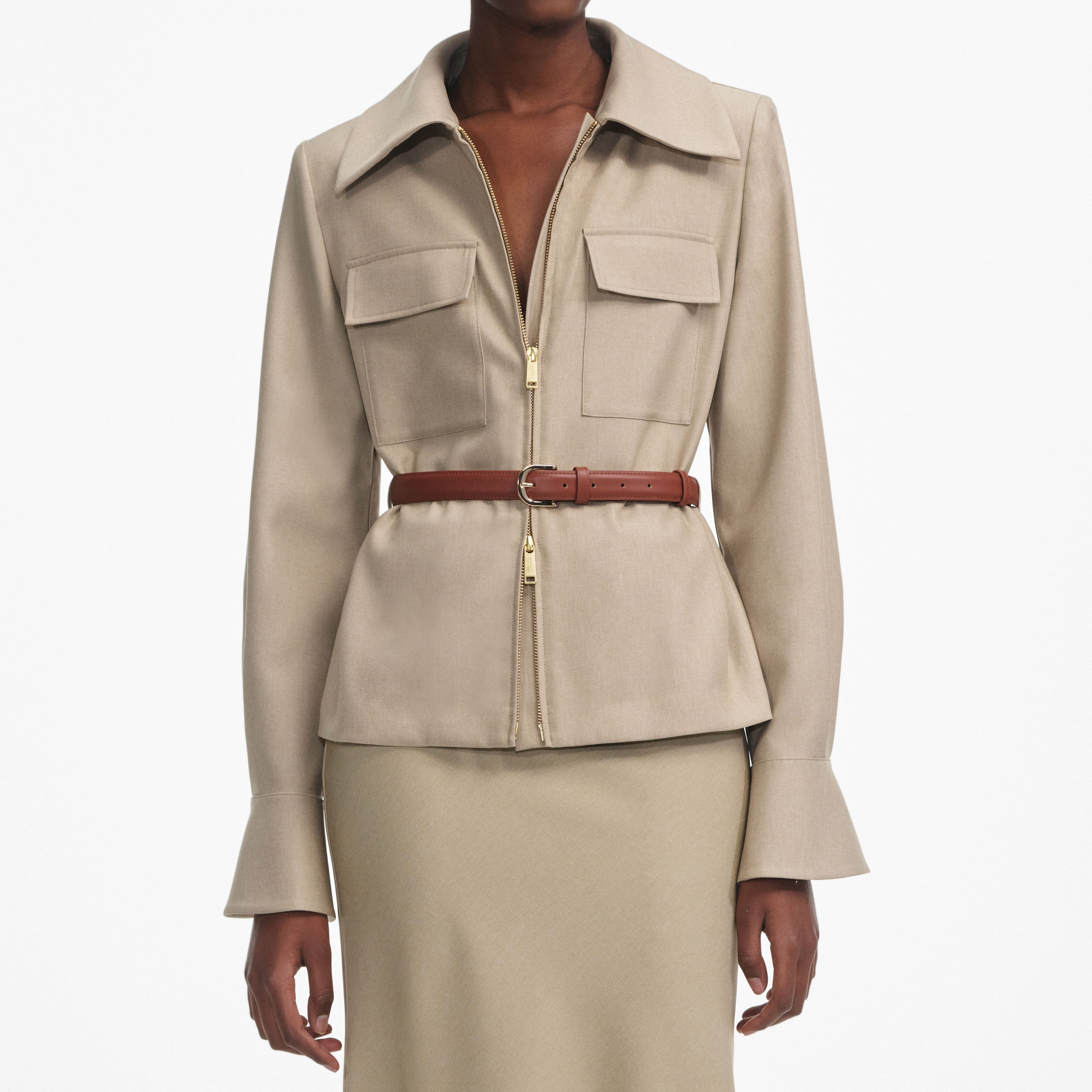 Upper Body/Placket: 100% Polyester Belt: Face: 100% Cow Leather Backing: Coating: Polyurethane Base Fabric: 100% Polyamide