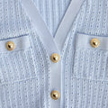 Endlessly flattering, this one-and-done midi dress is cut from baby blue pointelle knit. Its peplum waist and flared sleeves frame the form – match the gold buttons with our statement earrings.