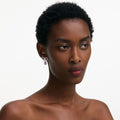 An oversized pink crystal droplet brings a pop of colour to these sparkling earrings. Use them to dress up a crip button down, or pair with our glittering bags for a fully accessorised look.