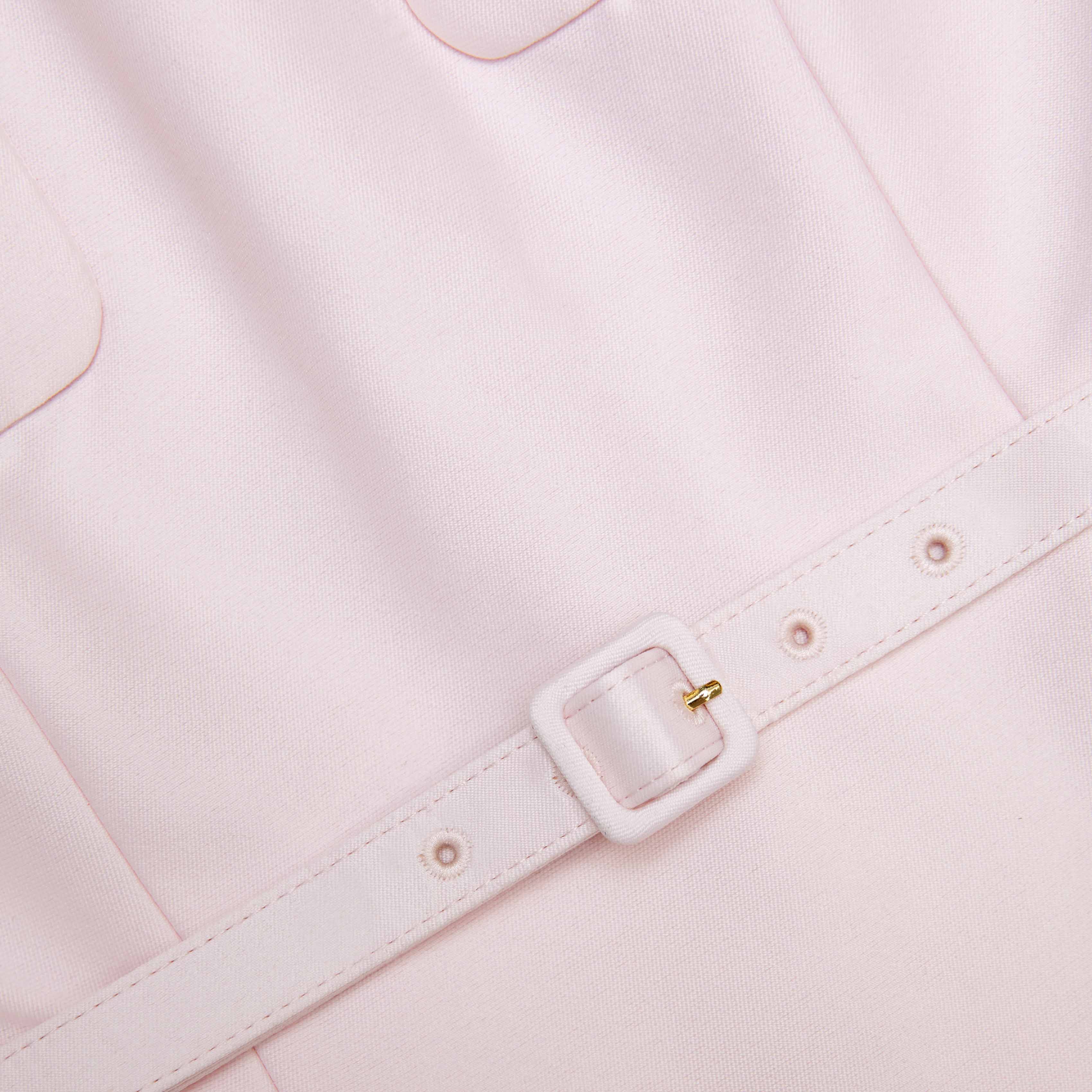 A romantic vision in pink, this taffeta midi defines elegance with its full skirt, dropped waistline and gold buttons. The belted waist enhances the form – wear with heels for the next soirée.