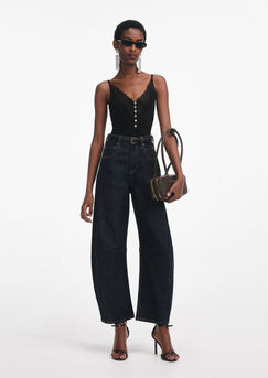 This ‘wear with everything’ top is all about its flattering neckline edged with sensual lace trims. Cut from comfortable ribbed viscose knit, pair it with denim and stilettos for a chic night out.