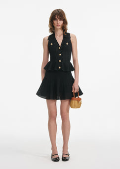 Game, set, match: this knit dress channels tennis chic with its halter neck open back and flirty mini skirt. A peplum waist and gold buttons add extra detail – wear with flats for alfresco parties.