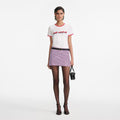 Channel noughties chic in this jersey t-shirt, with its contrast trims and printed red logo. Use it to build your off-duty look or style with glittering minis for a cool girl take on party style.