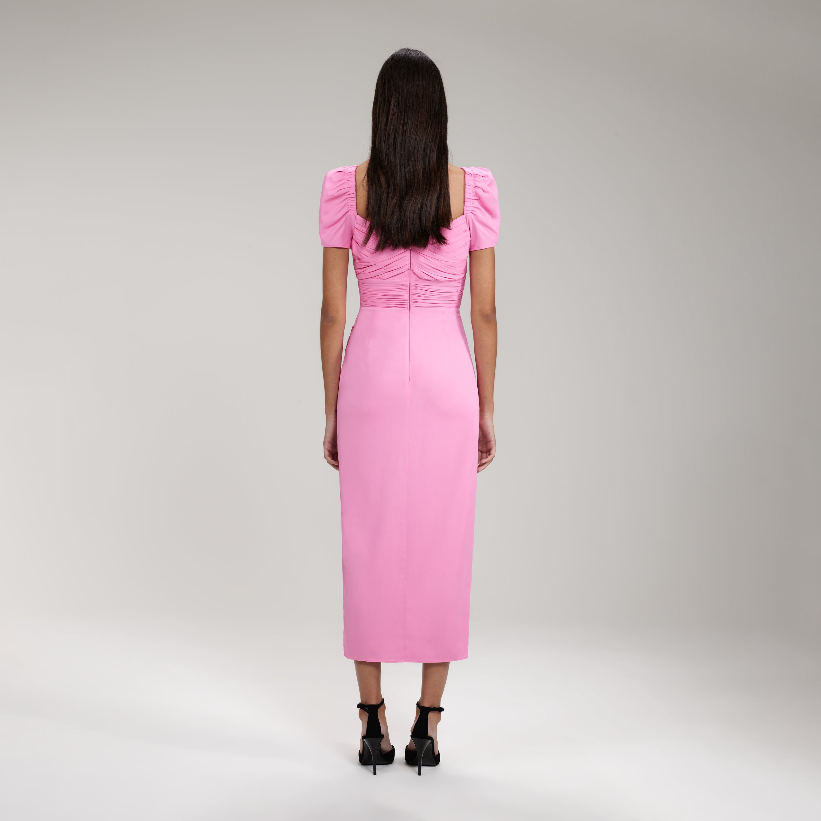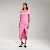 Accented by a sweetheart neckline and a gathered bodice, this pink midi dress will hug you in all the right places. A box pleat design give its sleeves a padded effect - a sure way to create the impression of a slimmer waist. Stretch crepe fabric ensures comfort as the sultry side split and classical draping sculpts out your figure — whether you’re entertaining guests at home or out on the town. Check the Size Guide to find your perfect fit.