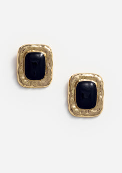 These vintage-inspired studs frame black enamel with a mottled gold base — making them perfect for spicing up even the most casual looks.
