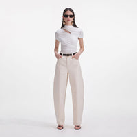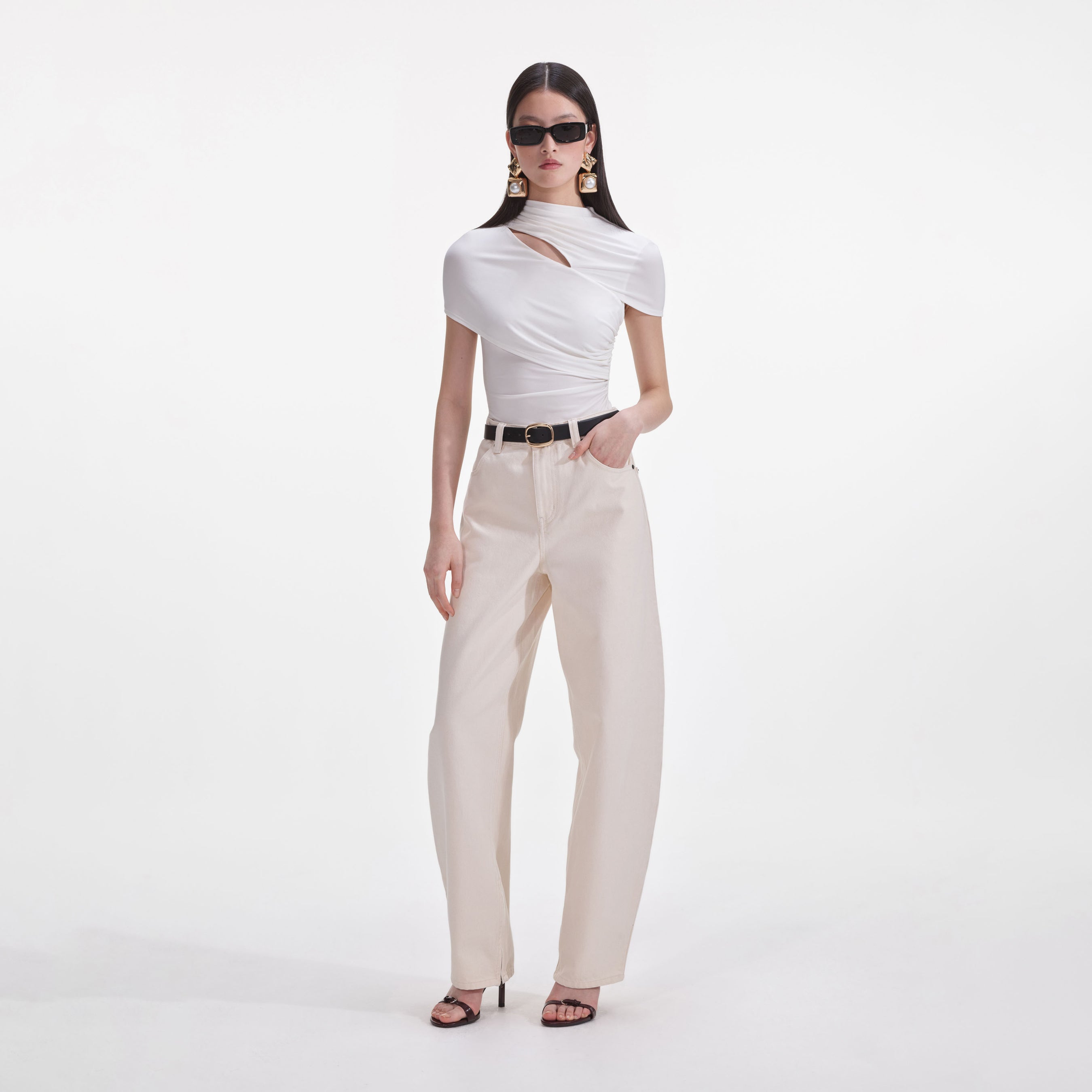 A refined take on party style, this cream jersey top plays well with jeans and minis alike. The bold cut-out adds intrigue to the high neckline – pair with our statement earrings for full impact.