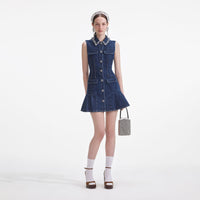 Diamanté trims and buttons add irresistible sparkle to the polished silhouette of this denim dress. Show off its flared hem with brogues for day and switch to heels for karaoke with the girls.