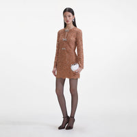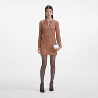 Neutrals for the win – this tan lace mini dress stars daring keyhole cut-outs accented by diamanté bow motifs. Pair its leg-lengthening hem with sky-high platforms for a night to remember.