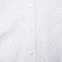 Cut from embroidered cotton, a dipped hem and front bib detail give this classic shirt dress an elegant spin. Style its relaxed fit with ballet flats for al fresco lunches and garden parties.