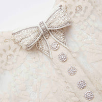Channel ethereal romance in this white lace dress, with its two-tiered skirt and ruffled trims. Diamanté bows and buttons are the cherries on top – match their shine with our statement earrings.